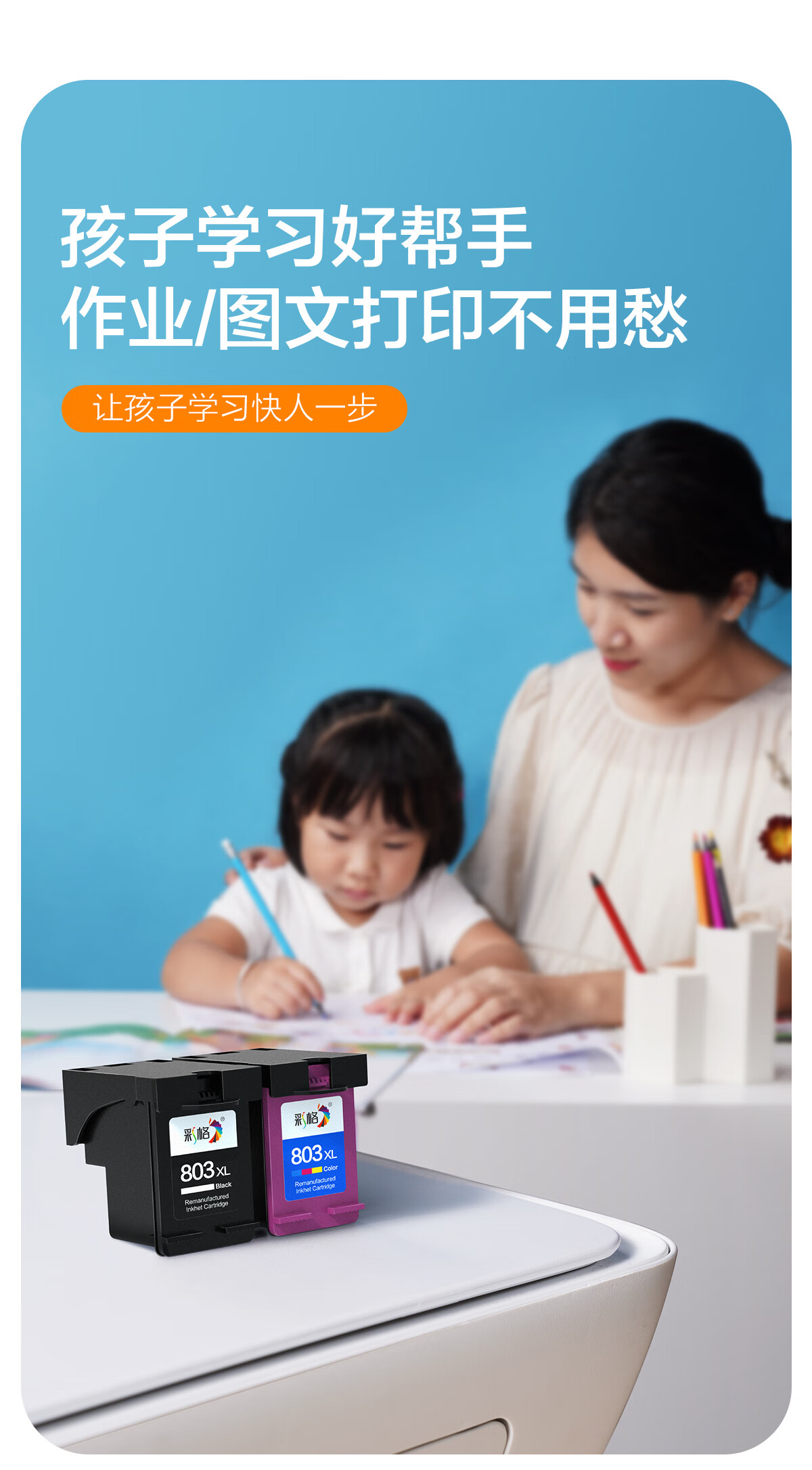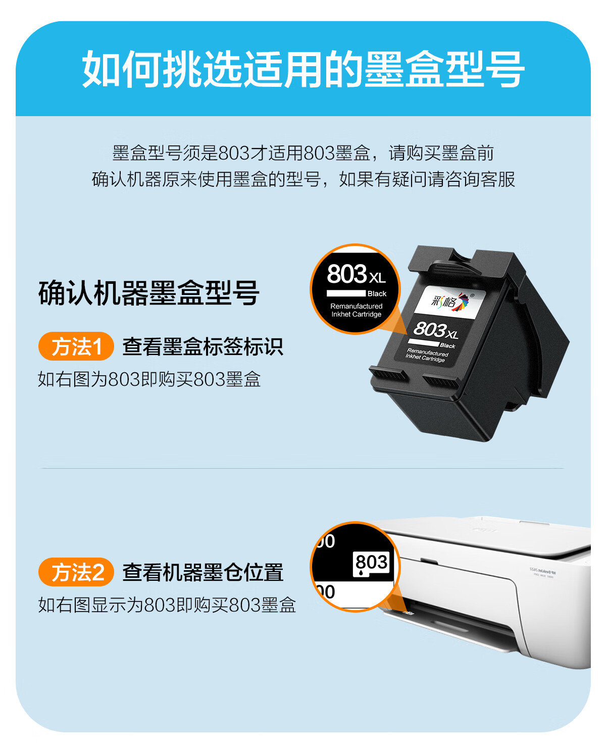 彩格适用惠普803墨盒可加墨 惠普HP Deskjet 1112 2131 1111 2132 2621 2622 2623 2628打印机墨盒黑色1000页 自营